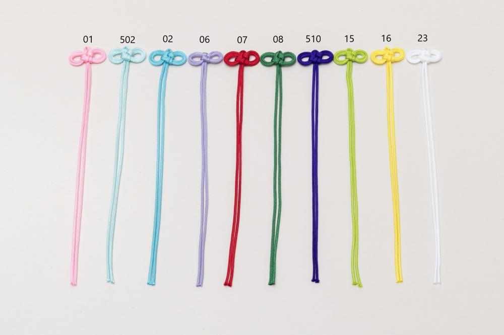 お守り紐(メガネ結び) 素材 レーヨン100% カラー 全29色 商品説明 弊社のレーヨン中唐打を材料に結び加工しております。 社寺仏閣のお守りや各種キャラクターの巾着袋等で使用されております。 生産地(結び加工):中国、ミャンマー ※汗・水濡れによる色落ち、蛍光灯・日光による色あせにご注意ください。 販売Lotは1,000個/1色となっております。 お見積りや商品に関するお問い合わせ等はお気軽にお電話メールにて承りますのでお願い致します。