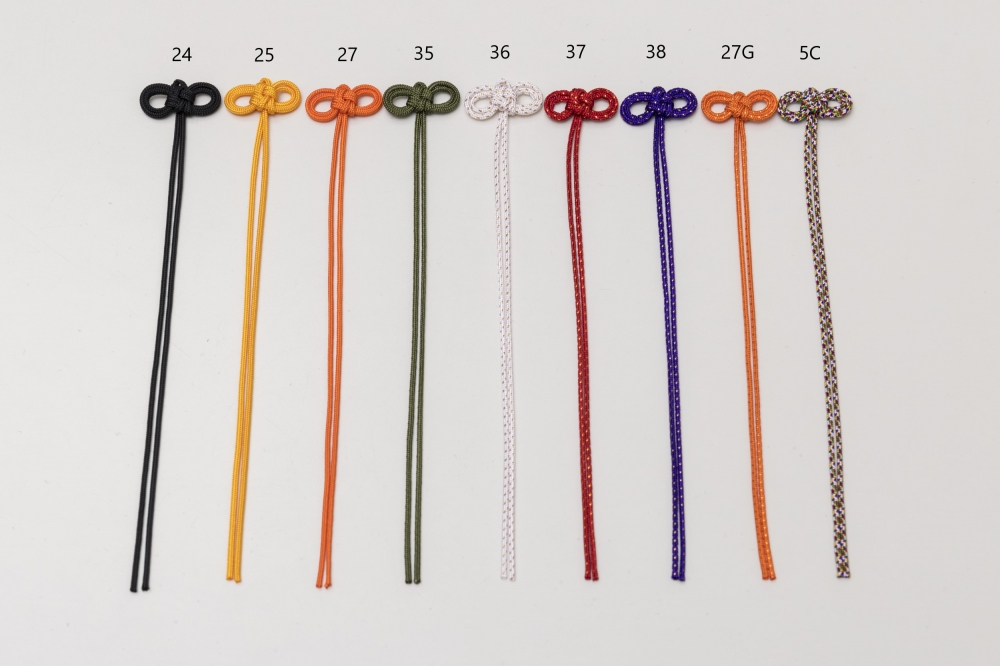 お守り紐(メガネ結び) 素材 レーヨン100% カラー 全29色 商品説明 弊社のレーヨン中唐打を材料に結び加工しております。 社寺仏閣のお守りや各種キャラクターの巾着袋等で使用されております。 生産地(結び加工):中国、ミャンマー ※汗・水濡れによる色落ち、蛍光灯・日光による色あせにご注意ください。 販売Lotは1,000個/1色となっております。 お見積りや商品に関するお問い合わせ等はお気軽にお電話メールにて承りますのでお願い致します。