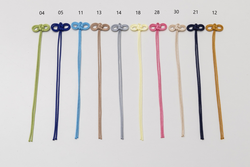お守り紐(メガネ結び) 素材 レーヨン100% カラー 全29色 商品説明 弊社のレーヨン中唐打を材料に結び加工しております。 社寺仏閣のお守りや各種キャラクターの巾着袋等で使用されております。 生産地(結び加工):中国、ミャンマー ※汗・水濡れによる色落ち、蛍光灯・日光による色あせにご注意ください。 販売Lotは1,000個/1色となっております。 お見積りや商品に関するお問い合わせ等はお気軽にお電話メールにて承りますのでお願い致します。